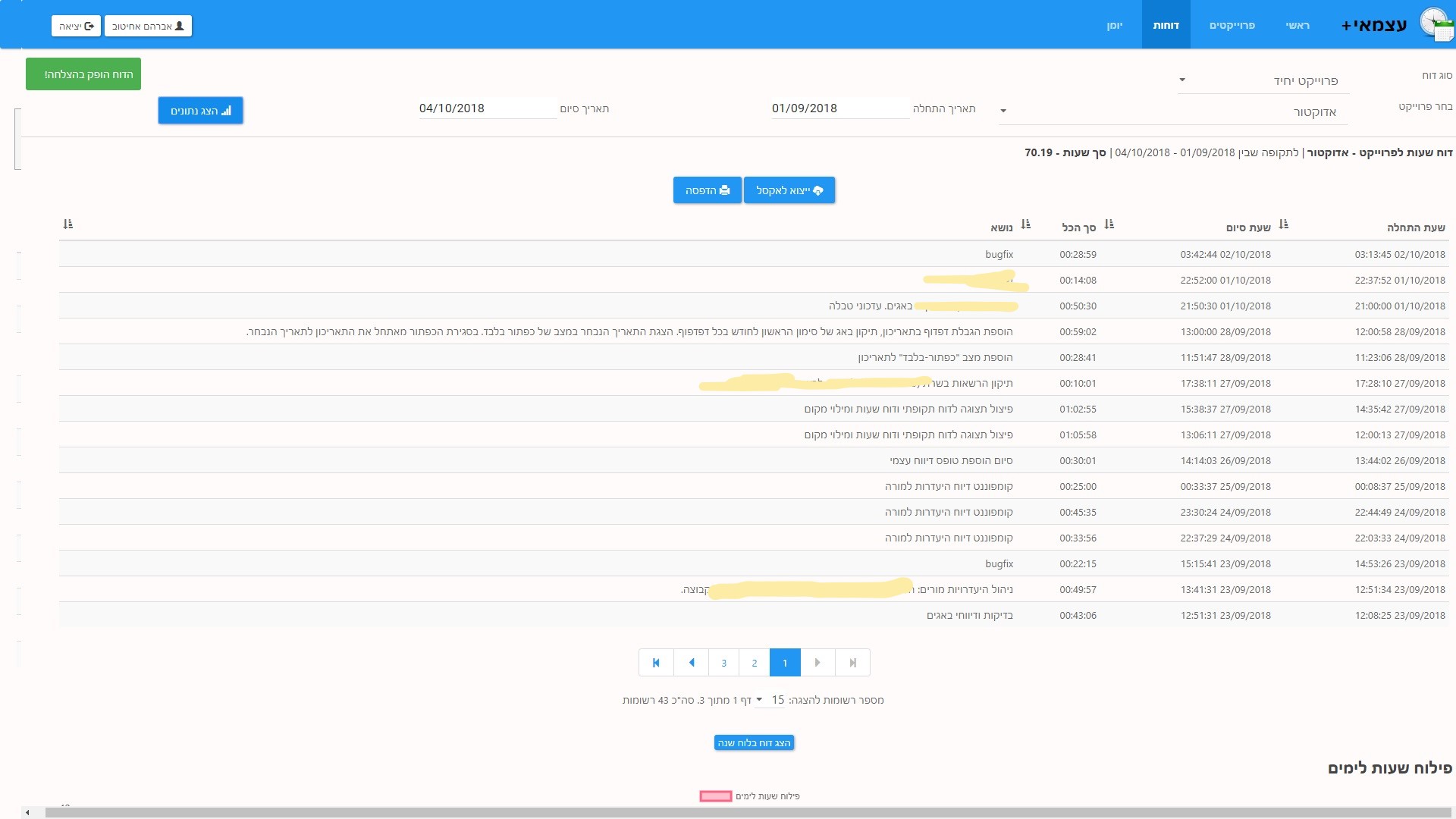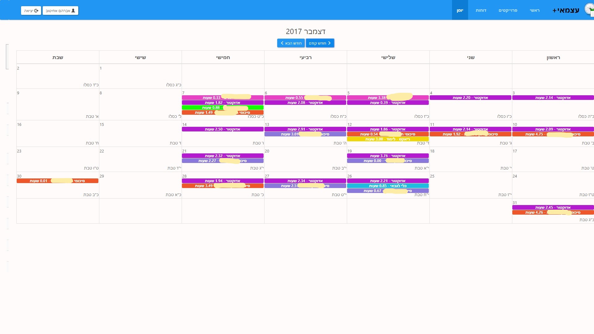 ניתן להפיק דוחות שעות עבודה לפרוייקט לתקופה הנבחרת, כך ניתן לעקוב אחר התקדמות העבודה עבור הלקוח, ואם אתם עובדים פר שעה – גם להגיש את הדוח ללקוח. כמו כן, ניתן לצפות בדוח שעות עבודה ביומן, כך ניתן לראות את שעות העבודה וניצול הזמן במבט רחב לאורך החודש כולו.
